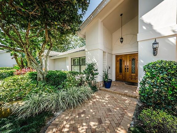Fabulous one-story Pebble Tec screen enclosed pool home located in Cobb's Landing on Lake Tarpon. Cul-de-sac location ideal for any family, brick paver drive, walkway and front porch. The solid hardwood front door with ironwork windows opens into formal living room complete with Lauzon 2" red oak engineered wood floors, cathedral ceilings and plantation shutters. The formal dining room has 10' ceilings with crown molding, chair rail and overlooks the screen enclosed lanai and pool. The functional kitchen has Silestone quartz counter tops, shaker cabinets, tile backsplash, stainless KitchenAid appliances, snack bar, tile floors and dinette which opens to the pool patio. Cozy family room has a wood burning fireplace with brick hearth, built-in book cases, transom window and plantation shutters. The master bedroom retreat has hardwood floors, 10' ceiling, crown molding and French doors to pool. 2011 remodeled master bath, Carrera marble counter top, Kohler sinks, maple wood cabinets, pendant lighting, window seat, new glass door walk-in shower, tub, separate water closet, his/her walk-in closet. Additional bedrooms wood floors, ceiling fan, closet, crown molding and plantation shutters. Second bathroom functions as pool bath. Outdoor kitchen: cedar cabinets, ceramic tile counter top, sink. 2011 PGT double pane impact resistant windows, all exterior doors (excluding front) double insulted, laminated panels, impact resistant, A/C 2012, sprinkler reclaimed water. Community marina, 2 tennis courts, basketball, playground.