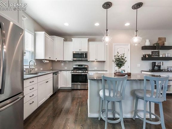 Welcome To A Remarkable Home That Seamlessly Blends Function, Style, And Comfort~ The Main Level Features Accomodations For Accessibility, Featuring An Oversized 846 Square Foot, Three-Car Garage With A Wheelchair Lift, Epoxy-Coated Floor, And Ceiling Storage Racks, Still With Ample Room To Park Three Vehicles Comfortably~Step Inside To Discover A Residence That Shows Like A Model Home, With Beautifully Maintained Wood Floors Flowing Gracefully Throughout Most Of The Main Level~Kitchen Is A Chef’s Delight, Boasting Granite Counters, A Center Island With Seating, Pantry, Stainless Steel French Door Refrigerator, And All Appliances Included~Spacious Dining Area Opens To An Expansive Stamped And Stained Patio With Both Covered And Open-Air Seating Areas—Perfect For Entertaining Or Quiet Evenings At Home~Enjoy Breathtaking Mountain Views From Both The Covered Front Porch And The Backyard Oasis~The Backyard Is Fenced And Showcases Gorgeous Landscaping That Complements The Natural Beauty Of The Setting~ The Primary Bathroom Is Accessible, Featuring A Roll-In, Zero-Entry Shower And A Wheelchair-Friendly Sink~Main Level Laundry Offers Built-In Cabinets, Sink, And A Pocket Door To Create A Quiet, Organized Space~Additional Main Level Highlights Include A Second Bedroom, Full Bath, And Built In Seating, Coat And Shoe Storage Inside Back Door~ The Inviting Living Room Features A Cozy Fireplace And Plenty Of Natural Light~The Finished Basement Expands The Living Space With A Large Recreation Room With Fireplace, Wet Bar, Two Generous Bedrooms, And A Three Quarter Bath~There’s Also A Spacious Unfinished Area With A Rough-In Bath—Ideal For A Future Junior Suite Or Bonus Space~Conveniently Located Near Schools, Shopping, Dining, Entertainment, Golf Courses, And With Easy Access To I-25, Powers Corridor, And Military Bases~Truly Better Than New—This Is A Home Designed To Elevate Everyday Living!