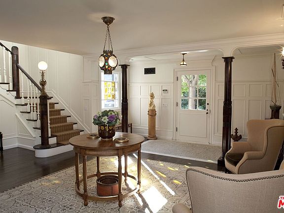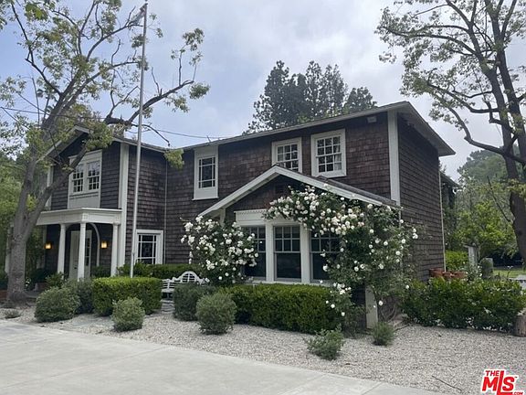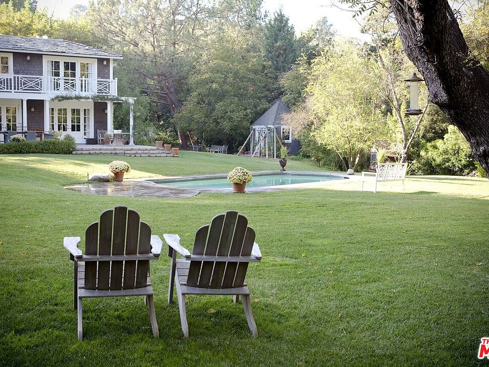 Nestled on a tranquil lane in prestigious Fryman Canyon, this classic Hamptons residence is on a breathtaking, flat, almost one-acre lot, and is the home of an internationally recognized and widely published designer. It has been featured in design magazines across the country. The property is double gated and has a very large motor court. Its elegant two-story facade leads to interiors with stunning finishes, hardwood floors, spectacular millwork, and lovely public rooms. The cook's kitchen (with a very large butler's pantry), cozy breakfast room and seating area open through French doors to the truly fabulous yard, pool and gardens. Upstairs, there are a large and luxurious primary suite, two large en-suite bedrooms, and a family room for studying, a kid's play area, or just hanging out! Outside, set perfectly in the enormous grassy yard, is the large, beautiful swimmer's pool. There is a huge terrace with an outdoor fireplace, seating area and dining area; a lighted pickleball court/sports court and two accessory buildings, which provide flexible space for a home office, gym, or yoga studio. There is also a fantastic kitchen garden for growing fresh fruits and vegetables. Surrounded by mature trees and tall hedges, this home offers a very private and serene retreat just moments from the park, hiking trails, and the fantastic shopping and restaurants of Studio City. This estate is perfect for those seeking a great location, stylish luxury, privacy and security. [$29,500 for an 18-month or longer lease term. $35,000 for a one-year lease.]