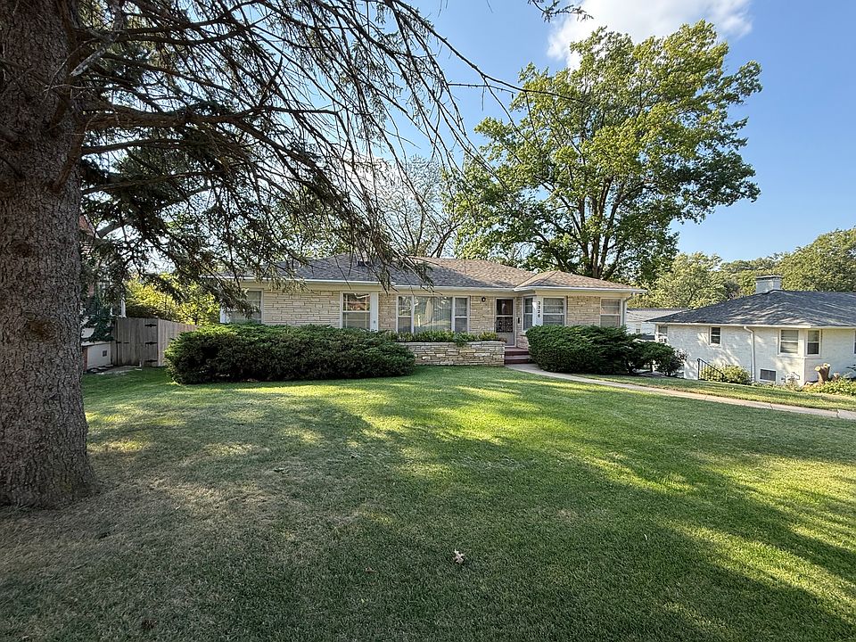 Rec roomLarge flat yardTons of storageAll stone ranchWalk out basementExtra large bedroomsFormal dining room