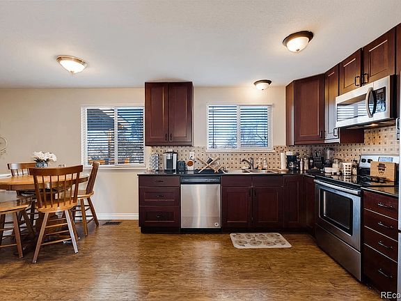Step into the world of elegance and modern comforts with this beautifully remodeled, low maintenance 4 Bedroom, 2 Bathroom home. The property invites contemporary living with gleaming, newer laminate floors running through the main living areas, and upgraded Stainless Steel Kitchen Appliances that embellish the kitchen space. A cozy family room, adorned with a charming, wood-burning fireplace, offers the perfect setting for relaxing evenings. The master bathroom, designed for utility, features dual sinks facilitating an easy morning routine. This home goes above and beyond by offering an insulated 2-car garage for storing your favorite toys and cars. Amidst the city hustle, this home provides a serene haven as it peacefully sits on a Cul-De-Sac. With a massive yard that takes full advantage of Colorado's notable sunshine, enjoy outdoor leisure like never before; cool off under your covered deck or soak in the sun, the choice is yours. This property skillfully balances functionality with lifestyle, making it an incredible find! Renter is responsible for all utilities - water, electric, gas, and internet. Renter is responsible for maintaining the property in a good condition, both inside and outside. Landlord will be responsible for the tree trimming as required. No smoking allowed.