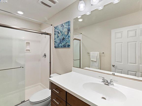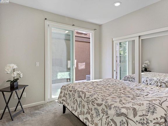 Welcome to this stunning Northeast facing attached single-family home, priced to sell! One of the largest move-in-ready townhouse style homes in Hayward! The first floor features a private bedroom/bath, and opens up the private backyard. On the second floor, enjoy a spacious open floor living room with new wide vinyl plank flooring, 65" TV and freestanding gel fireplace w/ cabinet. The modern kitchen boasts an open layout with an island, S/S appliances, pantry, and extra storage. Many large windows flood the home with natural light. The third floor offers three plush carpeted bedrooms, including a primary suite with a generous walk-in closet and a spa-like ensuite bath. Additional highlights include a convenient laundry room, extra storage, 2-car garage + 2 parking passes and low HOA fee. About 1/3 mile to Jackson Square shopping center, with Safeway, CVS, Starbucks, 24 Hour Fitness and Tesla Super Chargers, 1 mile to 880, less than 5 miles to the San Mateo Bridge and City Sports Club. A perfect blend of comfort and convenience.