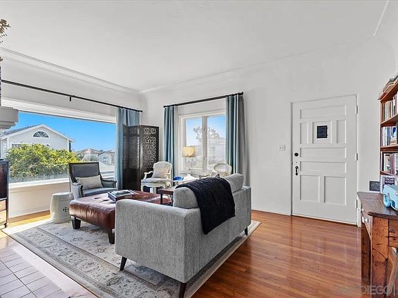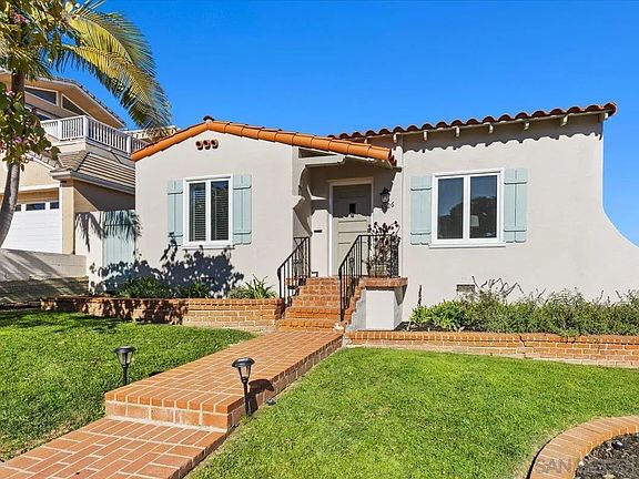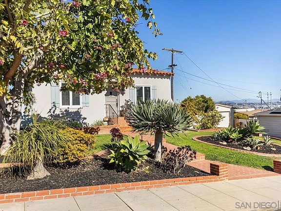 Nestled in one of Point Loma's tranquil neighborhoods, this charming 976 sqft Spanish style, 2-bedroom, 1-bathroom home offers a rare combination of comfort, space, and breathtaking views. Perched on a generous 5,500 sqft lot, the property boasts stunning views of downtown and the San Diego Bay—perfectly enjoyed from the spacious backyard and elevated deck. Inside, the home has been lovingly maintained, offering a warm and inviting atmosphere. A versatile bonus room off the one-car garage provides endless possibilities—use it as a home office, workout or art studio. The garage is accessible via the alley, enhancing privacy and functionality. The expansive backyard is a true gem, ideal for outdoor entertaining, gardening, or simply relaxing while soaking in the magnificent scenery. This is your chance to own a slice of Point Loma paradise with views that will leave you in awe.