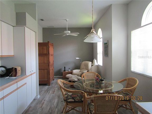 - Interior Features: Ceiling Fans(s), Eating Space In Kitchen, High Ceiling(s), Crown Molding, Solid Wood Cabinets, Thermostat, Living Room/Dining Room Combo, Solid Surface Counters, Window Treatments