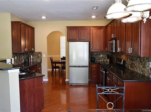 Welcome home! This lovely homes features include hardwood floors, granite counter tops and 42" maple cabinets. The homes location offers an easy commute to I-485 and I-77. Large corner lot that has a wooded buffer in the fenced in backyard, also located in a cul de sac. Open floor plan downstairs, great for entertaining!! All bedrooms upstairs, including master suite and spacious en suite with open bath and walk in shower, leading into an amazing walk in closet! Water filtration system throughout, and laundry is upstairs convenient to bedrooms. Bonus room upstairs that could also be a very large bedroom. Refrigerator and washer/dryer to stay.