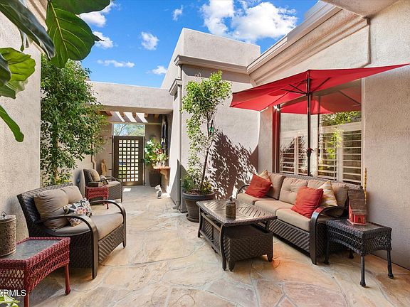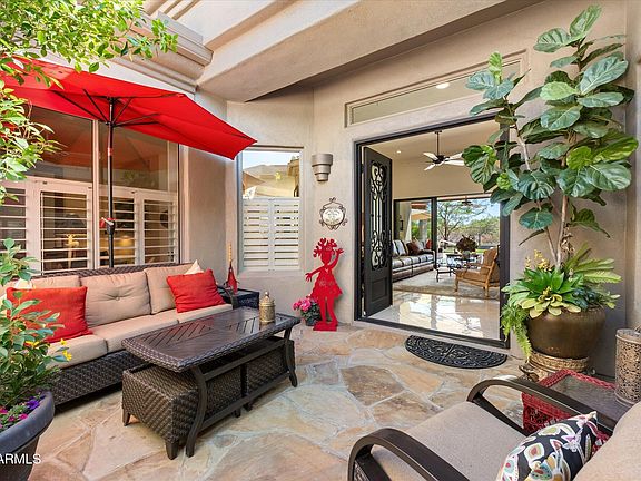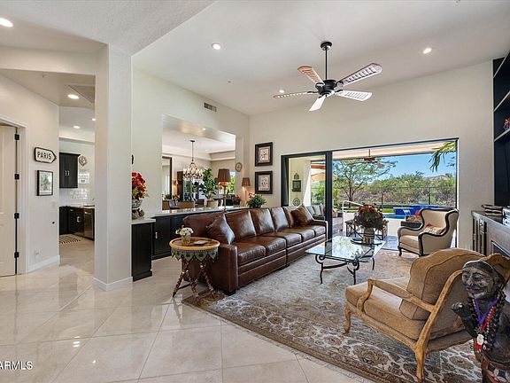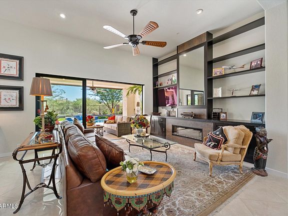 Rare Expanded Stella Model in Terravita! Enter through a private courtyard and custom iron doors into seamless indoor/outdoor living with a sliding glass wall. Remodeled 3 bed + den with expansive custom storage, tankless water heater, and new 3-car garage. Chef's kitchen features pro gas range, custom hood, roll-out shelving, and new laundry w/sink & storage. Primary suite includes in-suite spa bath, glass Dutch door to backyard, extended closet w/custom built-ins, and added linen. Jr. suite has in-suite bath, walk-in closet, and private yard via antique gate. Crema Marfil tile, solid 8' doors, raised ceilings, and custom built-ins (2 fireplaces). Outdoor retreat offers solar-screened patio, ramada w/firepit & BBQ, lighting, and lush landscaping. Oversized lot allows casita expansion!