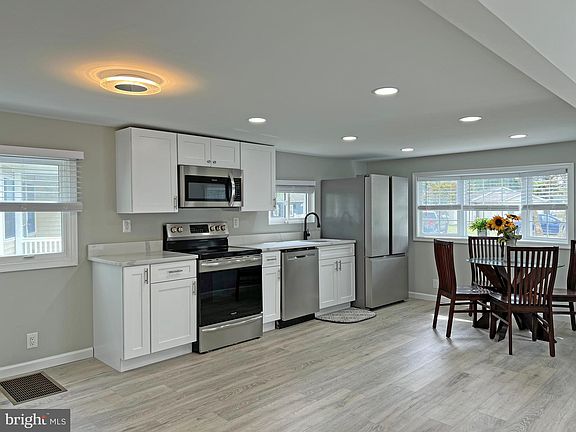 Marina community. The Rehoboth Beach boardwalk is approx. 10 miles away. And this home is just down the street from one of the two community pools. Other amenities include a kayak/canoe area, tennis courts, basketball courts & two playground areas. Marina with boat ramp (some slips for rent, but there may be a waiting list). This 1973 modified singlewide has a 10’x25’ addition, and it has just been remodeled inside and out! You’ll find luxury vinyl plank (LVP) flooring in the main living areas. And the home has insulated windows throughout. The front porch leads into the living room with a vaulted ceiling. From the living room, you step up to the bright, spacious eat-in kitchen. The kitchen has a stainless steel appliance package including a smooth-top electric range, built-in microwave, dishwasher & a large French-door fridge with bottom freeze. And the kitchen has gorgeous quartz countertops. There is a laundry closet in the kitchen area with a hook-up. The first bedroom - located off of the living room - has LVP flooring & a vaulted ceiling. The second bedroom is in the hall on the right. It is next to the 1st full bath, which has a tiled stall shower. The third, main bedroom is at the rear of the house, and it is next to the 2nd full bath, which also has a tiled stall shower. The slider in the hallway leads out to the deck. And there's a patio on the other side of the house, too. Large storage shed. New roof, new HAVC, new water heater, new electric panel & so much more. Leasehold interest with 2023 Lot Rent of approx. $669/mt., which includes water, sewer & trash/recycle. Homeowner pays electric, metered gas, cable/Internet/FiOS, and lawn service. The community owner requires an Application from the Buyer and all occupants 18-years-of-age or older, with acceptance based on: 1)Income Verification; 2)Credit Bureau Score (including debt-to-income ratio); 3)Clean Criminal Background Check. Leased-land properties do not qualify for conventional 30-year mortgages, but financing may be available to qualified borrowers from a few Lenders that specialize in installment/chattel loans for manufactured homes on leased land. Buyer will have a 3.75% DMV Doc Fee as part of their closing costs & a settlement agent fee.
