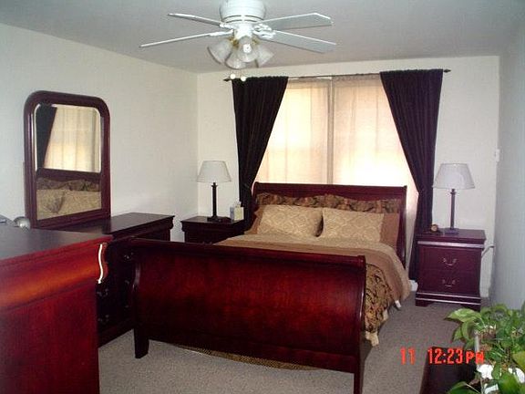 Ceiling Fan in the Spacious Bedroom. The Apartment includes All Appliances (Refrigerator, Oven, Garbage Disposal, Washer and Dryer and Air Conditioning.)