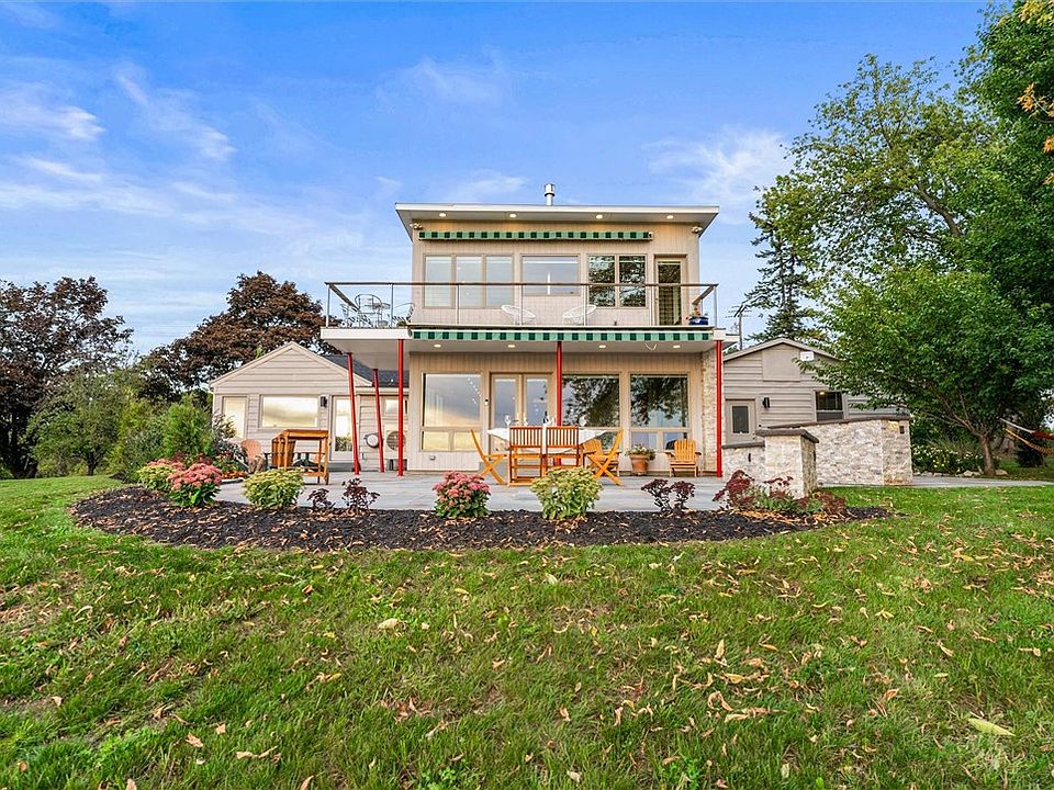 Mid-century modern living with contemporary luxury on Seneca Lake, we invite you to fall in love with 3328 Boody's Hill Road! Perched amongst the vineyards & fields of historic Rose Hill Mansion estate overlooking Seneca Lake, this mid-century home built in 1953 has been reimagined for today while celebrating its modernist roots. Its architectural design is modern yet stylish and functional while deeply connected to its landscape. Enjoy entertaining on the bluestone patio, Brazilian stone heated floors on a snowy morning, or watching the sunset over Seneca Lake from your balcony & master suite. This home offers both comfort and inspiration to anyone who walks through its doors! Intricate landscaping with a 1,000 square foot patio with lighting allows you to entertain sunrise to sunset rain or shine with two awnings. The master suite upstairs features a balcony, laundry with walk-in closet, heated bathroom floors & shower with coffee/wine bar. The master bedroom downstairs is lake view with a full bath. Two more bedrooms and one full bath all located on the first floor all have ample closet space and lighting. A formal living room with views into the kitchen/dining/living area with open concept floorplan to accentuate the view from any space within the home. Enjoy the automatic skylight in the kitchen adding natural light to your island while spending time in the kitchen. The property is located on a double lot with sweeping views of Seneca Lake, a private dock with 50 feet of lake frontage & a permanent right-of-way access, this is more than a house- it's a celebration of Seneca Lake Living!
