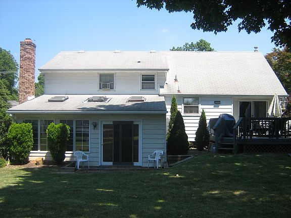 Large family room with wood burining fireplace and skylights, living room, formal dining room, eat-in kitchen, den, 4 bedrooms, 1-1/2 baths and 1 car garage.