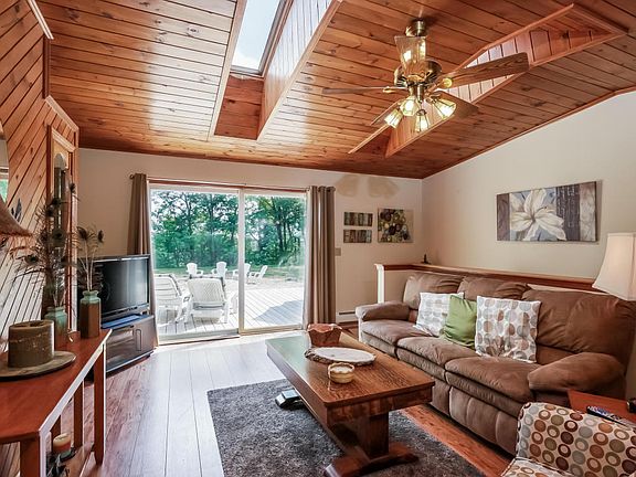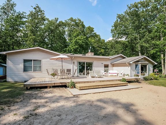 Very private home on 5.5 acres. It is located on the high banks of the Muskegon River. Property has 435 feet of beautiful river frontage where you can enjoy boating and fishing. Huge deck off front of the home and fire pit are perfect for enjoying peaceful summer evenings. Home is spacious with 3 bedrooms, 2 full baths that include walk in shower and Jacuzzi tub. Updated stainless appliances, laminate and ceramic floor give home vibrant feel. Outdoor wood boiler in addition to propane furnace ke ep utility cost low. Over 700sqft of finished space in the Basement including a ''Man Cave/Rec Room.'