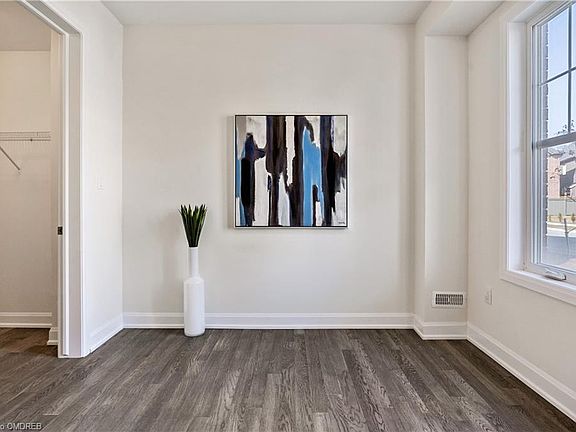 Bold, bright & beautifully upgraded end-unit urban town in the Preserve! Peace & privacy are plentiful in this quiet community bordered by the Preserve Woods & Neyagawa Woods, visible from your windows, yet you are just minutes from schools, shopping, restaurants, hospital & highways. Set up the lounge chairs, grab a cold beverage, take in the sun, & shake off the dust of the day relaxing on your sunny 200 sq.ft. (approx.) balcony. This cut above, extensively upgraded Mattamy 4-bedroom offers approx. 1952 sq. ft. with more windows, & several optional builders' options. Your home also comes with 9' ceilings, 8' interior doors, deep baseboards & casings, grey-washed wide-plank hardwood floors on two levels, upgraded staircase, pot-lights, CAT5 wiring, & attached double garage with inside entry. The ground floor offers an optional 4th bedroom with walk-in closet & 4-piece ensuite bath, + optional separate laundry room & utility room. The second level is where all the living happens, with a generous living/dining room for entertaining, a 2-piece bathroom, & an open-concept family room off the kitchen. Master your culinary skills in the beautiful eat-in kitchen with sleek quartz counters, optional walk-in pantry, island with breakfast bar & walk out. Rest & rejuvenate in the upper level master bedroom & prepare for your next day in the upgraded optional 'Oasis' spa inspired 4-piece ensuite bathroom. Two additional bedrooms on this level share a 4-piece main bathroom. Beautiful!