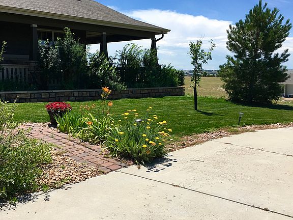 PRICED REDUCED!! Gorgeous 2 story home on 5 acres with panoramic mountain views!! Located at the highest point of Elkhorn Ranch. Large eat in kitchen features a gas range, ledge stone island, granite counter tops, new back splash , touch less faucet, soft close drawers, desk area, wood floors, stainless steel appliances, upgraded cabinets with slow close drawers, pantry and eating area. Spacious family room with gas fireplace, ceiling fan, built in shelves. Formal Living and Dining rooms. Main floor office/bedroom. Custom stone and wood encased stairs with wrought iron spindles. Large master bedroom suite with retreat area,hardwood floors, updated shower with stone floor, and walk in closet. Spacious secondary bedrooms with new carpet Upper floor laundry room has cabinets and a sink. Central Air. Hardwood floors on upper level. New sump pump. 3 car garage with epoxy flooring. Dog run area. Large patio area with pergola and bBQ pit Easy commute to E 470, Southlands