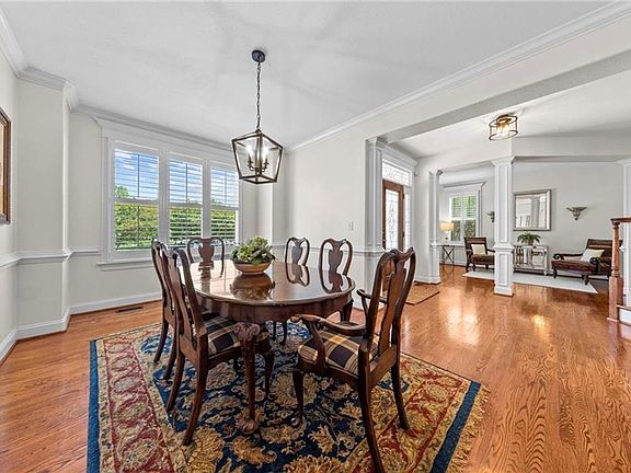 Stunning Riverfront home on corner lot, one block from the Nansemond River! Spacious 6 bedrooms, 5 bathrooms home (4 with ensuite), storage galore with custom built-ins, wet bar, electric wine coolers, Primary En-suite & Family Room fireplaces, sparkling hardwood floors throughout living areas, butler's pantry, custom plantation blinds, mudroom, outdoor living area, sunroom features lots of natural light, deck, & fenced-in yard. The open floor plan creates easy entertaining family and friends in the gourmet kitchen, living room & dining room. Lose yourself in the primary suite, that boasts a cozy gas fireplace, sitting area with bar, dual vanities, relaxing jetted tub, ample closet space and a private covered porch to enjoy sunrise/sunset over the river. The Riverfront neighborhood offers many upscale amenities, including golf, clubhouse access, and a waterfront park. Easy commute to highways, shopping, restaurants and more.