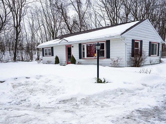 One floor living in this remodeled ranch home. Situated on a treed and private lot. Paver block front walkway. Slate foyer. Pergo wide plank laminate floors through out. Large Living room with electric fireplace. Open to the sharp eat-in Kitchen. 2019-Refrigerator and dishwasher. 2018-Stove. Microwave, built-in wine rack, double sink. 2020-vinyl sliding glass door. 2 Bedrooms, ceiling fan in one. Full remodeled bathroom. Smart granite vanity and backsplash, square sink, wainscoting, tile floor. Laundry hookup. Fenced yard, shed, vinyl tilt in windows, seamless gutters, 20x20 stamped concrete patio in backyard. 2020-Furnace. 2019-200 amp electrical service and 6 panel doors, knobs and hinges. 2018-Roof, hot water heater and driveway. Major items are updated. Move right in!