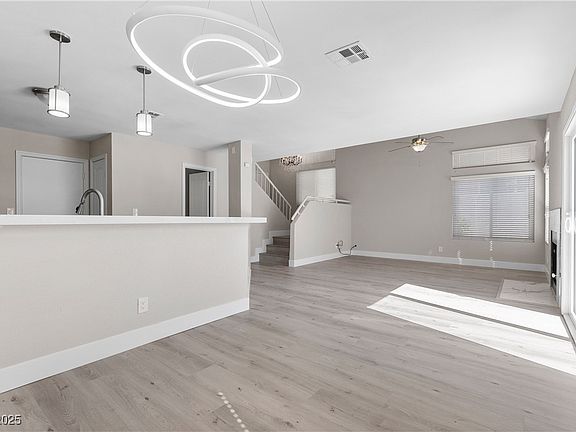 Modernized two-story home just over 1,300 sq. ft. in the desirable Lakes community. The kitchen with stainless steel appliances opens to the great room with an inviting fireplace. Upstairs features a spacious primary suite with dual sinks and walk-in closet, plus a junior primary with its own bath and walk-in closet, along with a versatile den. Enjoy your private backyard retreat with pool and spa, while the community offers tree-lined streets, walking trails, and beautiful waterscapes. Conveniently located near shopping, dining, Summerlin, and the Strip. A perfect starter home with modern upgrades in a serene setting that’s move-in ready and waiting for its new owner! Updates include pool & spa refinished (2017), new A/C (2019), new windows (2021), and brand-new flooring & indoor paint (August 2025).