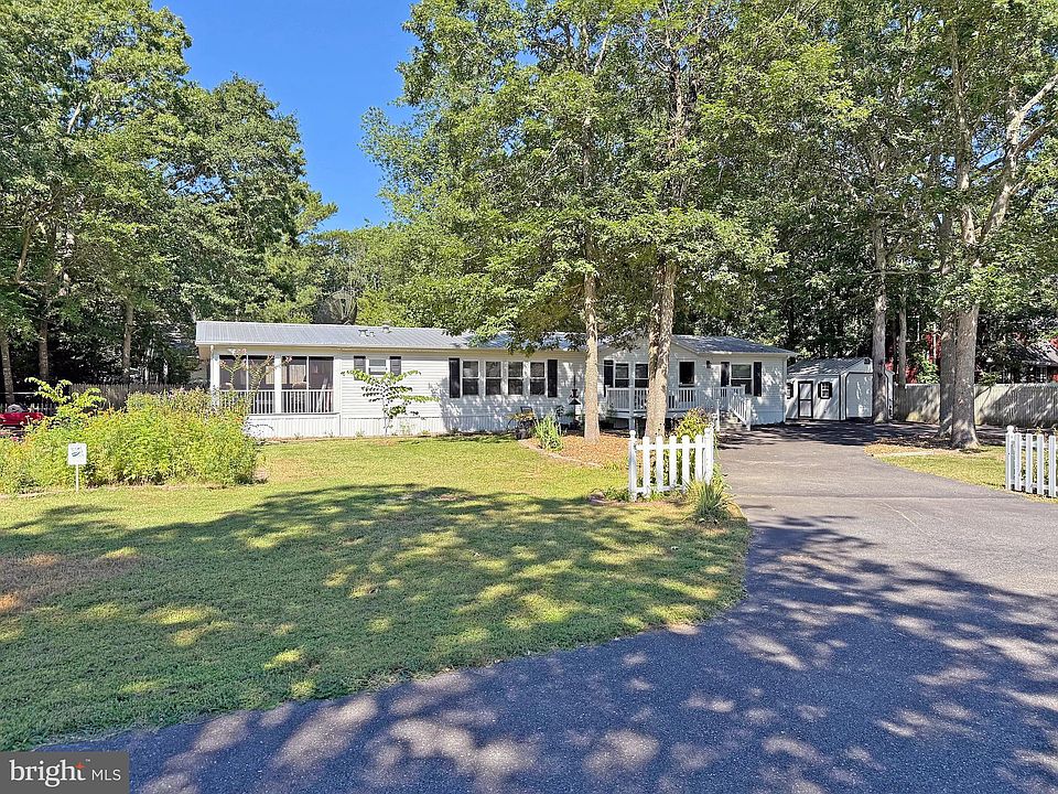 Every day can be a beach day when you live in Shady Dell Park! Spacious 1,792 sq. ft. doublewide manufactured home is on a 1/4-acre lot located less than 3 miles from Bethany’s boardwalk and beach. And this home is just 8 miles from the Fenwick Island State Park beach. The living room features vaulted ceilings, a wood-burning fireplace, and it adjoins the dining area. Big eat-in kitchen with a breakfast-bar island. The kitchen has luxury quartz countertops and a white appliance package including a gas range, range hood, refrigerator, and a dishwasher. The laundry room has a side-by-side washer & dryer set, as well as table space to fold your clothes or a place for a little home office. The utility closet houses the newer tankless water heater and the water filtration system. Popular split bedroom plan. Main bedroom is en Suite with an updated bath including a newer double-sink vanity and a large step-in shower. The other two bedroom share the second full bath in the hall; that bath was also updated. You are going to love the expansive screened porch. There’s also a patio area overlooking the stunning pollinator garden. Privacy fencing in the backyard. The storage shed has electric including a dedicated 30amp RV outlet, too. Circular/U-shaped driveway with extra parking spaces for your RV, boat, and other vehicles. So many upgrades between 2018 - 2025 including a new metal roof on the home and shed. Front porch has been upgraded with composite decking materials for easy care. Public sewer & a private well (60'). Low HOA dues of just $75/year and not too many rules. Golf carts are allowed.