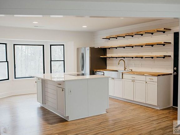 Charming, 3 bed, 2 bath, modern farmhouse with a mid-century twist located near the water in Statham, GA. This completely renovated - from floor to ceiling to shingles - single family home has brand new stainless steel appliances, butcher block and quartz countertops, open shelving, shiplap, and light fixtures that are as artful as they are functional. Home also features outdoor living and a huge backyard perfect for a pet, garden and spring time dinner parties. This precious place is the perfect backdrop to a future filled with lasting memories. Seller will install a garage door with an acceptable offer. This home is just minutes from Bear Creek Reservoir and the public boat ramp! Possible access behind house, as well. Check out the GPS google picture!