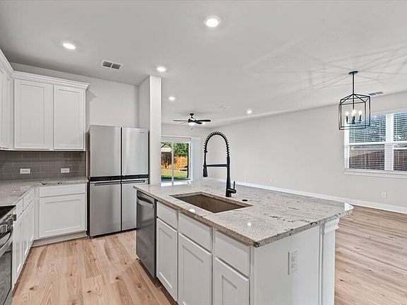 Welcome to this upgraded 3BR, 2.5BA home in sought-after Blanco Vista. Featuring over 2,134 sq ft, it offers an open layout with granite counters, recessed lighting, and a large kitchen island flowing into the living and dining areas. The main-level primary suite includes double vanities, walk-in closets, and a spa-style bath. Upstairs are two bedrooms, a full bath, and a game room. Smart-app control for stove, thermostat, and garage door. Custom window system provides natural light or full privacy. HOA includes pools, playground, and community center. Walking distance to the elementary school.