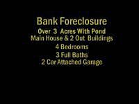 Bank Owned Property On Over 3.4 Acres Price Lowered to SELL NOW! Country living anyone? This dwelling sits on over 3.4 acres and has a in-law suite with 1 bedroom, bath, and kitchenette, Out building with wood lean-to, pump house with covered entry, and a private pond with pump and irrigation. The main house has over 2100 square feet of living space, all tiled floors, split master suite, separate office area, and a huge stone fireplace. This one is worth taking a look at if you like the outdoor life!