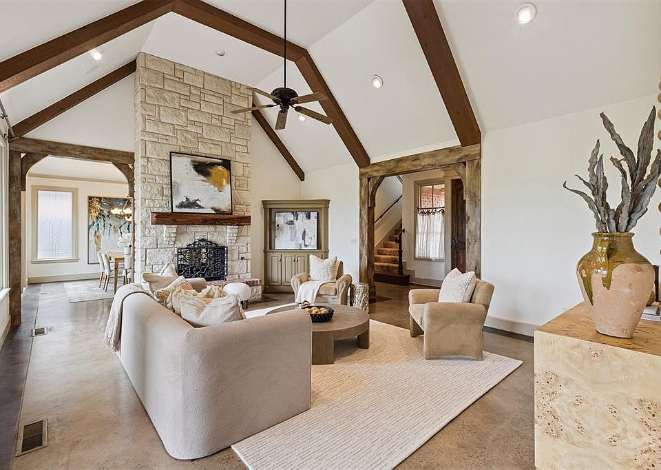 Welcome to this beautifully maintained golf course home nestled in the prestigious, gated Rose Creek neighborhood, offering breathtaking views of the 8th fairway. This versatile floor plan features 3 spacious bedrooms plus a bonus room, or can easily function as 2 bedrooms + a dedicated office and bonus room, perfect for remote work or guests. Inside, you'll find rich stained concrete floors and thoughtfully defined living spaces that offer both comfort and functionality. The spacious living room is a true focal point, featuring stunning wood-beamed ceilings that add warmth and character, along with large windows that frame serene views of the fairway. The kitchen and dining areas are set apart yet easily accessible, allowing for privacy while still maintaining a natural flow for daily living and entertaining. The primary suite overlooks the golf course and includes a spa-like ensuite bath and a generous walk-in closet. Enjoy peaceful mornings and vibrant sunsets from your private backyard retreat, perfectly positioned along the lush greens. The primary suite offers a spa-like bath and generous walk-in closet, while the flexible bonus room provides extra space for a media room, gym, or playroom. Rose Creek offers 24/7 security, a community pool, fitness center, clubhouse, and easy access to top-rated schools, shopping, and dining. Don't miss your chance to own this one-of-a-kind home in one of Edmond’s most desirable golf communities!