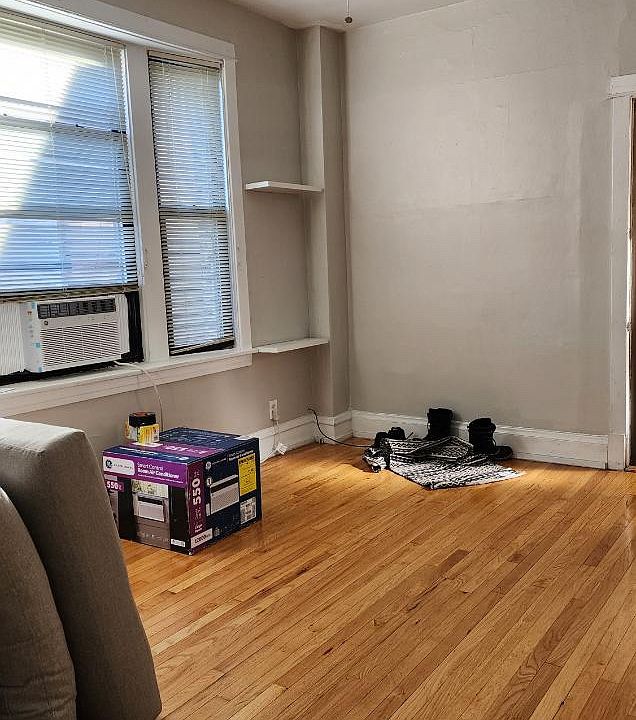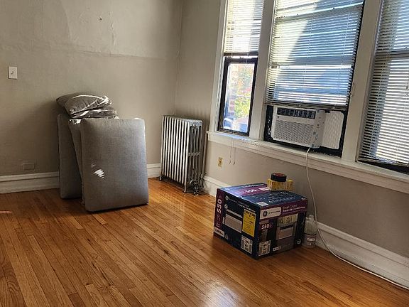 Modern vanityGenerous natural lightPractical layoutAmple cabinet storageWindow ac unitsHardwood floorsRadiator heat