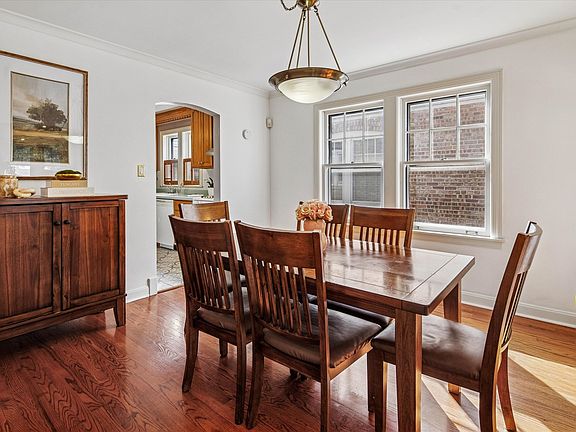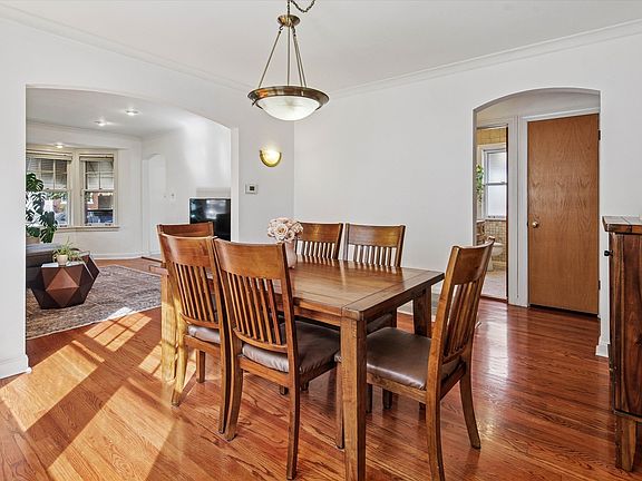 This sunny brick home offers 3 bedrooms, 1 bath, hardwood floors, and a full finished basement. The bright and spacious living and dining areas have a functional layout that flows seamlessly to the kitchen and are great for everyday living and entertaining. The kitchen has plenty of cabinets and new ceramic tile floor. The attic features an expansive primary bedroom with seating area, office space, and walk-in closet. The other two bedrooms are generously sized and have great closet space. The basement is fully finished offering a family room, laundry room, and large storage room. Step outside and enjoy your own private patio, ideal for entertaining, relaxing, or summer barbecues. A detached garage adds convenience and extra storage. Conveniently located close to shops, restaurants, Smirz Park, and public transportation.