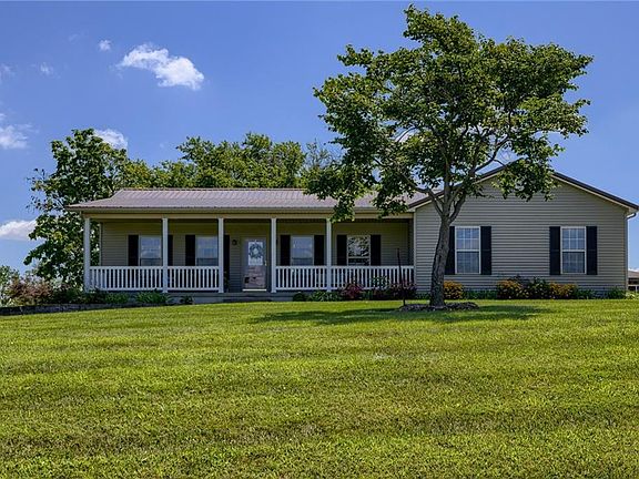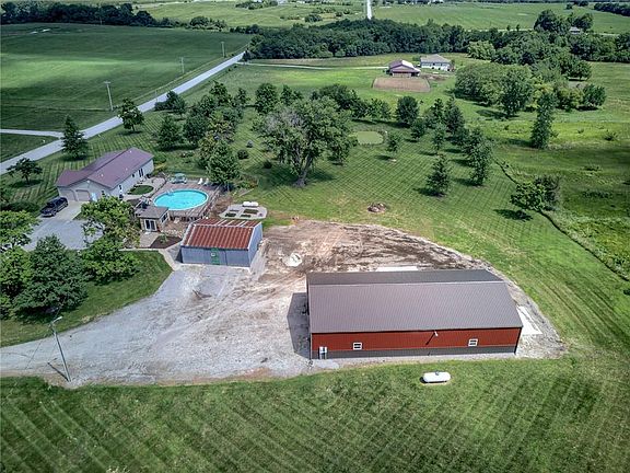 Rare Opportunity in Lathrop School District. Beautiful Home Situated on 5 acres with Outbuildings! Seriously, if you are in need of a Shop or Outdoor Building this 40x80 Building will not Disappoint. If that is not enough Storage, we have you covered - featuring an additional 30x35 Building. Home is Meticulous - Primary Suite on the Main Level, 2 Additional Bdrms in the Basement plus a Large Family Room Area. Open Floor Plan, Easy to Maintain - Vinyl Siding, No Carpet throughout the House. Above Ground Pool with Wrap Around Deck & Pool Shed. Seller mows the 5 acres so you will be able get a feel for boundary lines. 40x80 Building Does offer 2 entrances - area for an office has already been set up for you. Easy Highway Access - 2 Mins from I-35. Acreage Setting is Stunning - featuring Apple Trees. Nothing has been left undone - THIS IS A MUST SEE!