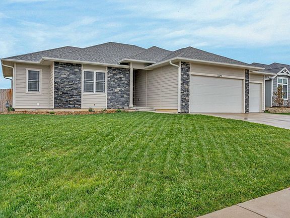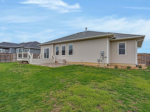 Embrace modern living in this 2018, custom-built Washburn Rural home for sale, offering an elegant open floor plan with hardwood floors on the main level. The heart of this home is its beautiful kitchen, showcasing custom cabinets, granite countertops, a breakfast nook, large pantry, and adjoining dining area leads out to a composite Trex deck, perfect for entertaining or enjoying the large, fenced-in yard. The storage shed features a garage door, and is perfect for storing your outdoor equipment! The main floor features a living area with a cozy fireplace, three bedrooms, and two full baths, including a spacious primary en-suite complete with a shower, double vanity, and walk in closet. Main floor laundry, conveniently located in the mudroom, directly from the three-car garage. The finished basement offers two additional living rooms, one equipped with a wet bar and perfect for entertaining. It also includes two bedrooms, a full bath, and extra storage space in the unfinished portion of the basement. Kitchen appliances are included, adding to the move-in readiness of this exquisite home. The playhouse will not stay. Experience the perfect blend of comfort and sophistication in this stunning property.