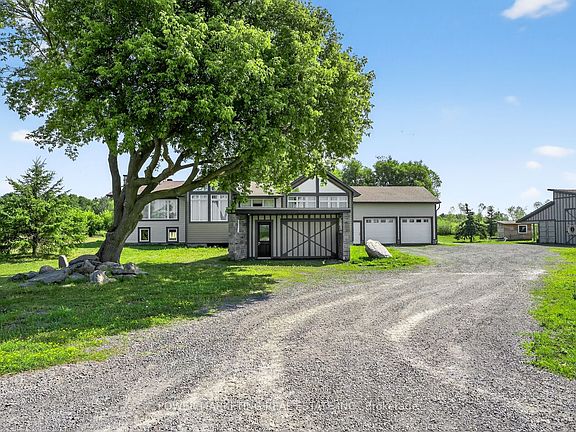 In-Laws welcome to paradise! This beautiful custom made newer home (2017) built by the builder for himself With 6 bedrooms and 4 bathrooms with top quality materials and workmanship! Main floor has separate in lawsuit with two bedroom and full washroom and a laundry room , Main house has 3+1 bedroom , Huge open concept kitchen with Black quartz countertops and quartz back splash and hardwood floors, Large living room with a wood burning fireplace, Lord Master bedroom has a full en-suite and two big walking closet, Lower level has a huge rec room, 5 piece washroom with sauna and Jacuzzi, Main floor In-law suit has radiant heated floors, separate eclectic meter and much more! This great home offers you 2 Acres land, elevate your outdoor living experience with an exquisite above-ground pool, an outdoor Jacuzzi with custom decking, privacy walls, and safety railings create a secure and inviting environment for all to enjoy.20K generators And a 4 Section Barn (40x30, 8x40,8x40 and 8x40)! This great home is also back to your own lake (pond) with custom build fountains that add a touch of elegance and tranquility to the outdoor living space, creating a serene and captivating atmosphere for you and your guests to enjoy! A section of the house is from the old home, but all done newly! Make sure you see it today!