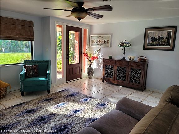 Look no further if your wishlist includes a peaceful and quiet setting on the water and a country feel. This 3BR/2BA CBS move in ready home comes with a boathouse and lift. One home from the lake makes for a 2 minute boat ride to great fishing. Your neighbor looking from the front yard is a 46 acre pasture with a stunning view of pasture with Oak and Cabbage hammocks. This home has gone through many upgrades during the last 5 years including a new Copper Penny metal roof with no exposed fasteners and exterior paint in 2020. All new windows with bamboo shades in 2020 Also installed was a new irrigation system in 2019. Added only 4 months ago is the latest in technolegy Trane HVAC system. Kitchen has beautiful Cherry cabinents with pull out pantry, Granite counter tops, deep well sinks, and LED lightning. New appliances include a black SS French door fridge, dishwasher and above range slimline microwave. The 3 month old range includes double ovens with air fryer in the lower oven. All appliances are GE. Master bath is equipped with a large walk in tile shower, new vanity and toilet. Installed 6 month ago is an energy saving on demand hot water heater system. Laundry room comes with upper and lower cabinets as well as added wood shelving for extra storage. Laundry room is equipped with GE 1 year old washer and dryer. Textured walls and ceilings throughout the home and new ceiling fans are included. All floors are tile for a pet friendly home. From the dining room step into the glassed Lanai to check out a beautiful view of the lake. The 12x20 open patio extends the outdoor living area and is the perfect place for your outside kitchen, grills, cookers and entertaining. The original carport has been screened and made into a workshop with storage closets, and a large work table . Also included is an aluminum carport and a backyard 12x11 storage shed which affords extra storage space. The lush green lawn, Grandfather Oaks as well the clean canal and lake view will call you to the outdoors. This location affords the old Florida natural atmosphere and wildlife walking through your yard plus a 27,000+ acre lake named the 3rd best Bass lake in Florida. Not to forget the fun of catching Bluegill, Speckled Perch and Catfish off your dock.