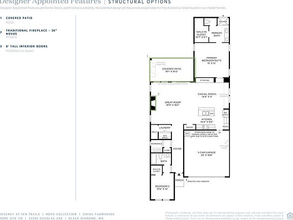 Designer-curated finishes are throughout this luxury single-level home, offering 2 bedrooms plus a flex room. The expansive great room and casual dining area overlook the desirable large covered patio, making entertaining a breeze. A chef's dream kitchen features warm gray-stained shaker cabinets, a white quartz kitchen island with a waterfall edge, and stainless Whirlpool appliances, including a 5-burner gas cooktop. The luxurious primary bathroom boasts a dual-sink vanity with a white sand quartz countertop, satin nickel fixtures, and a frameless shower enclosure. The fenced backyard is fully landscaped. The resort-style amenities in this community will make you feel like you're on vacation year-round. Experience the luxury you've always wanted by scheduling a tour today. Disclaimer: Photos are images only and should not be relied upon to confirm applicable features.