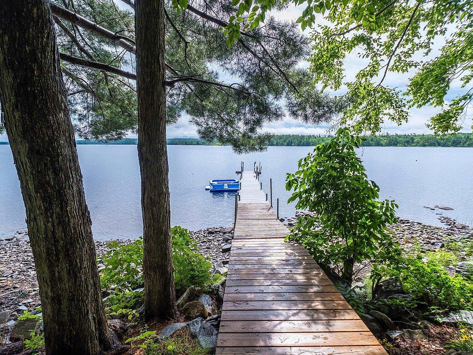 This is a rare Grand Lake property that offers the perfect blend of natural beauty, comfort, and versatility with a chalet-style family home that is also a legal duplex set on nearly 50,000 sq ft of gently sloping land and 152 feet of lake frontage. Designed for both peaceful living and smart investment, the home features two fully self-contained units—each with stunning lake views—separated by a professionally built rock and mortar retaining wall corridor. The original larger two-story unit includes 3 bedrooms 2 full bathrooms and the master suite has a private balcony and ensuite. The main floor has the kitchen, dining, living room as well as a den that would be a great exercise or office space as it has a full bathroom as well. From the main home you walk outside to a sunroom with new flooring. The newer unit with chalet architecture features an open concept main floor with the living room and kitchen, it has hardwood floors, heatpump and power meter. The upstairs has 2 bedrooms and a full bathroom. Current owner has been renting out both homes, although an ideal lakefront investment, it also serves as a wonderful family home and inlaw suite combo. A concrete boat launch, lakefront patio, and 48-foot aluminum dock with waterproof composite decking make enjoying the water effortless, and the detached two-story, double-bay garage with a finished, heated lower level is perfect for car enthusiasts or hobbyists. With the new Exit 5A extension making the airport just 7 minutes away and Halifax/Dartmouth only 15 minutes, this is a rare opportunity to enjoy lakefront serenity without sacrificing convenience.