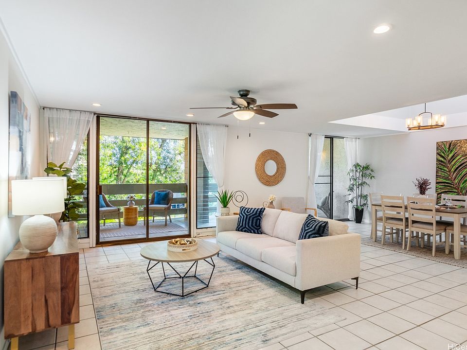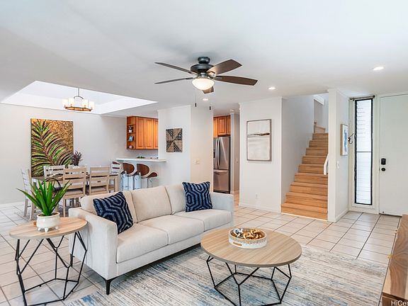 Experience the comfort of single-family living in this spacious 3-bedroom, 2.5-bath Gardenia Manor townhome. With soaring ceilings and nearly 1,500 sq. ft. of thoughtfully designed living space, this home offers an airy, open feel perfect for island living. The generous main level flows seamlessly to a large lanai surrounded by lush treetop views — ideal for outdoor dining or quiet relaxation. Upstairs, the primary suite features its own private lanai, walk-in closet, and en suite bath, creating a peaceful retreat. Two additional bedrooms each open to charming Juliet balconies, welcoming in natural light and gentle trade winds. Beautifully updated throughout, this home blends comfort and style with modern finishes and effortless flow. Gardenia Manor is one of Kailua’s most sought-after communities — pet-friendly, well-managed, and complete with lush landscaping, a sparkling pool, and recreation areas. Two covered parking stalls are conveniently located near a rare extra storage space. Just minutes from Kailua Beach, shops, and dining, this is island living at its best in the heart of Kailua.