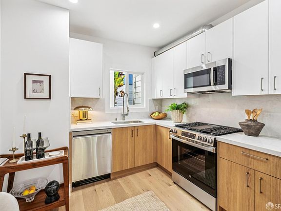 Set along a charming side lane in Lower Pacific Heights, this freshly remodeled 2 bedroom home offers a stylish retreat just steps from the vibrant energy of Fillmore Street, Japantown, Polk Gulch, and nearby parks. The open concept layout features a sleek eat-in kitchen with stainless steel appliances including a gas range, microwave hood, dishwasher, and a refrigerator with in-door dispenser - ideal for both everyday living and entertaining. A newly tiled bath with a glass surround shower, new hardwood floors, and in-unit laundry add comfort and convenience. Bay windows bring in natural light, enhancing the warm, inviting atmosphere. With flexible bedroom space and a Walk Score of 97, this home blends comfort, style, and the best of San Francisco living.