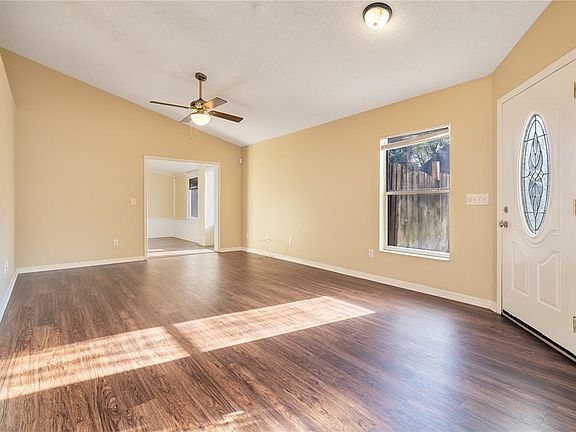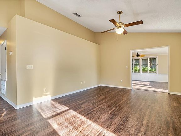 Take advantage of a seller paid promo! Seller offers a $6,398 credit toward closing costs and prepaid items, including a possible rate buy down, on any full price offer accepted by 10/31/25. Step inside this 3 bed, 2 bath, 1,344 sqft home set directly across from a peaceful conservation area. Through the front door, the foyer opens to a formal dining area and a large, open family room with sliding access to a 400 sqft bonus sunroom. The kitchen sits at the heart of the home with Corian counters, tile flooring, quality appliances, a breakfast bar, and an informal dining nook with conservation views. Flooring in the main living areas is laminate and tile for easy upkeep. Down the hall, the primary suite offers a large walk-in closet and a bath with a relaxing garden tub, separate shower, and a wide dual-sink vanity. Two additional bedrooms share a full bath. Out back, a fenced yard gives you room to play, garden, or entertain. Low HOA. Convenient to schools, shopping, dining, and Hwy 441. Come see how easy living can be here.