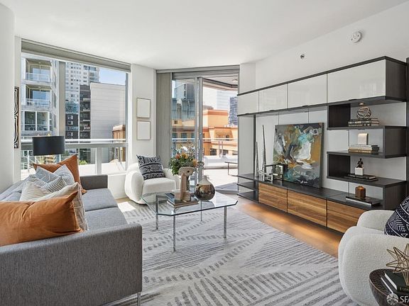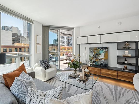 Experience the art of urban living at Lumina, where you wake up to abundant sunlight in your sophisticated upper-floor corner residence. One of the most desirable and rarely available floor plans, Residence 7G is a spacious 2BR/2BA home with a custom home office alcove. The serene primary suite offers a walk-in closet with custom built-ins and a spa-inspired bath. The guest bedroom, with side-by-side closets, sits adjacent to a full bathroom with a sleek walk-in shower. The open-concept living area flows to an expansive private deck offering spectacular city views, a glimpse of the bay, and open sky above a charming historic rooftop. The gourmet kitchen boasts professional-grade Gaggenau appliances, SieMatic cabinetry, and white quartz countertops anchored by a substantial island. Amenities include 24/7 concierge, valet parking, a saltwater pool, spa, steam and sauna rooms, a sprawling state-of-the-art fitness center, business center, private theater, rooftop terrace, social lounges, and more. A highly coveted private storage unit is included.