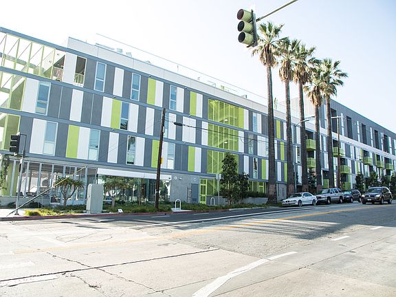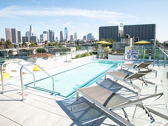 An inspiring apartment community with an upscale vibe and central location between downtown LA and Silver Lake, with easy access to Highway 101. While you admire the view of the Los Angeles skyline through your floor-to-ceiling windows, your guests will admire your apartment's fluid design and contemporary features. The kitchen draws the eye from the wood plank flooring up to the stainless-steel appliances, quartz counters, and upper cabinets in white lacquer and lower in brown wood tones. Socialize in the clubhouse and then have a refreshing drink on the rooftop Jacuzzi pool deck, grill your barbecue favorites, or simply relax in front of several fire pits taking in the skyline. Take advantage of the state-of-the-art fitness center or visit the onsite pet park or pet spa to take care of your pet.