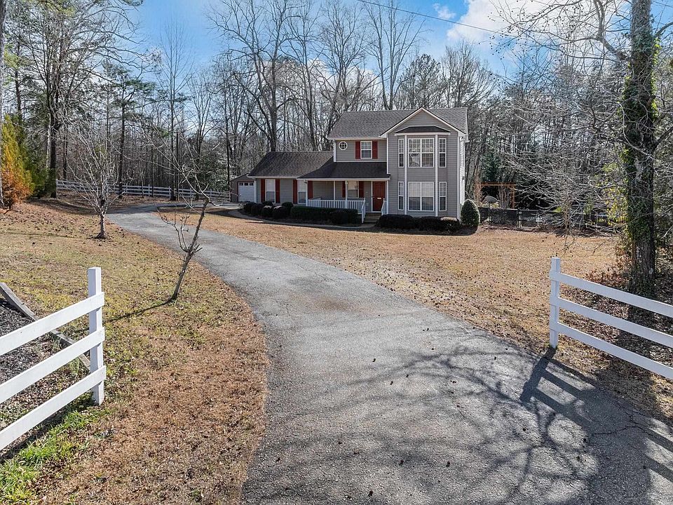 Beautifully well maintained home sitting on 2.18 acres with no HOA and no restrictions. This home has 3 bedrooms, 2.5 bathroom, and 2-car garage. Home located on a quiet private dead end road. Kitchen has been updated in the last 6 months with granite counter tops and tile backsplash. Stainless steel appliances which include refrigerator, range, microwave and dishwasher. Gas log fireplace. Interior recently painted and some new updated light fixtures/ceiling fans. Enjoy evenings on the screened in back porch, covered hot tub, or a dip in your in-ground pool. Outbuilding has a bay door with some minor alterations could serve as detached garage. It has been an art studio or could serve as a tiny home. It has electric and could be fitted with plumbing and water. This home has a lot to offer a growing family. Come view this home today!