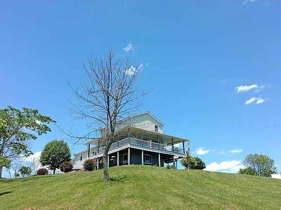 This vinyl sided 3 story includes a partial basement. Basement is totally ground level. Kitchen is a galley type with an abundance of custom made cabinets. Beautiful views of the countryside from "wrap-around" 712ft deck on 3 sides. Over 18 acres with approx. 10 to 12 acres in woods-deer and turkey a plenty. Detached garage 20x30. Pellet stove is for sale. Fireplace in partially finished rec room is 1st level. Above ground pool is 27ft round & 5ft deep, liner and pump are approx. 2 years old.