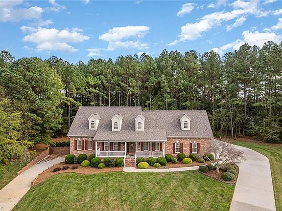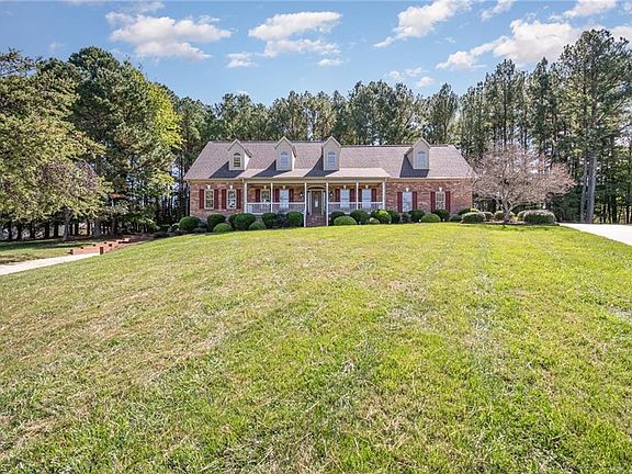 Custom-built and carefully maintained, this home is located at the quiet end of a cul-de-sac and offers a country feel with everyday convenience. The mostly level lot backs up to mature trees for privacy, featuring a rocking-chair front porch and a sunny deck. Inside, a vaulted living room with a gas-log fireplace and real hardwood floors provides a comfortable space for gatherings; the granite and stainless-steel kitchen includes abundant cabinetry, with appliances replaced last year. Flexible rooms offer space for work or hobbies, and storage is plentiful. A reinforced driveway was designed for heavier vehicles—perfect for storing an RV, boat, or trailer. Parking is ample with two separate garages plus generous driveway space. Located minutes from major highways, shopping, and services, yet it remains peaceful and tucked away. Move-in ready and built to last.