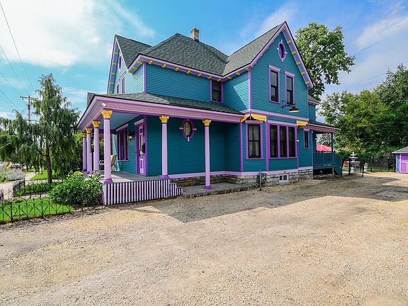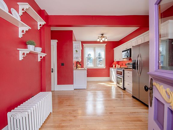 A SHOWCASE ONE-OF-A-KIND PROPERTY. A classic Victorian beautifully renovated to feature its colorful ornate facade paired with a completely updated interior that is truly a masterpiece of period appropriate design and craftsmanship to recreate a stunning 1904 vintage 2 story. You'll love the welcoming open front porch, 9ft ceilings, original natural blonde woodwork, intricate architectural details, hardwood floors main & up, abundance of natural light, different window shapes and sizes, and built-ins. Modern eat-in kitchen features a cozy breakfast nook overlooking the backyard, stainless appliances, pantry, high end light fixtures, and a convenient 1/2 bath. Enjoy the versatile living & entertaining spaces including an expansive living room, elegant front family room or "parlor," and separate formal dining room. Second story offers a full bath and 5 bedrooms featuring a light and bright primary bedroom with walk-in closet. Fall in the love with the fabulous outdoor entertaining area with a private fenced backyard offering a gourmet outdoor kitchen with full size stainless steel Jenn-Air gas grill, cooktop & ovens, a microwave, fridge, and small sink... plus a paver patio and firepit to complete an evening of grilling and gathering! New insulation, Hardie board siding and exterior professionally painted 2019, 37 new Andersen windows 2020, home completely rewired with 200AMP service, new roof with 50yr Duration shingles 2023, fence & paver patio 2020, kitchen 2020, skim coated walls and ceilings - just completed 3 upstairs bedrooms, all new paint throughout, newly refinished maple hardwood floors on the main level. Meticulously renovated to retain original charm and character - every detail considered. Move-in ready! 10 car driveway; perfect for work vehicles or extra drivers! Ultra convenient location to West 7th shops/eats/breweries, just minutes to 35E and downtown Saint Paul.