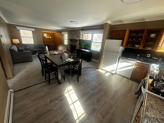 Beautiful and spacious 2 3 bedroom, 1.5 bathroom home situated on 4 private acres! This large duplex features a paved driveway, garage, cozy fireplace, and a deck perfect for relaxing or entertaining.