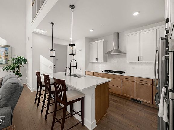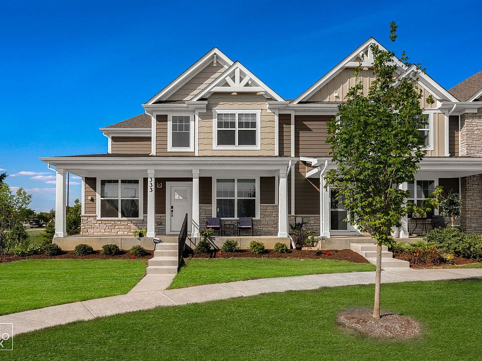 Welcome to the Alcott model, an end unit villa plan boasting 2,424 square feet, including a full basement! Located within the award winning Elementary District 102 and Stevenson High School. There's a long covered front porch with handrail ! The first things you'll notice inside are the towering 2-story foyer and a den to your left. The lovely den is fit for a private home office. As you continue walking forward through the foyer hall, the 2-story great room, dining room, and kitchen come together as a wonderful gathering and entertainment space! Also you can see the second-story loft overlooking the great room below. Outdoor patio is accessible through sliding glass doors on the sidewall of the great room. You will absolutely love the kitchen, which boasts 42" Gourmet white (upper) and maple cabinets, quartz countertops, upgraded GE appliances, and a huge island with room for seating. The laundry room has GE Profile washer/dryer set. A coat closet is next to the 2-car garage located off the kitchen area. One of the best features is the first-floor owner's Master bedroom with features you will appreciate: the en-suite bathroom with its huge shower, and a dual-sink vanity. On the second floor, you're welcomed by a huge loft area. Use this space as an additional family room, a media room, or a library to relax and curl up with your favorite book. Find the second and third bedrooms across the hall from each other. Improvements: Crown molding on kitchen cabinets, Quartz Group 2 countertop, Wood Flooring in MBR and MBR closet, French doors study, Improved Lighting, LED Ceiling fixtures, Stained Rails & Painted spindles, Alternate Hall bath plan with a linen closet plus a walk-in closet and a linen closet in upstairs hallway. Two extra windows. TOTAL UPGRADE FROM BUILDER: $57,728 plus. Cabinets and countertop in the study, Cabinets in the laundry room, Cabinets in the Master BR closet, Ceiling fans in three bed rooms, RO system for water purification, Front step railing, Decora off /on switches Plus many more. Total upgrades after purchase: $14,400. Walk to (Less than 1/4 mile, 5 minute walk) a Buffalo Grove park inside the housing complex and enjoy a tennis court, a pickleball court, and a children's playground. Excellent for walking & biking with many paths around the townhouse. Near places: Golf courses, shopping places, and restaurants. Whether you're downsizing or buying your first home, this home may be the perfect.