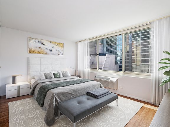 Call me today to see this great apartment with sunny south facing wall to wall windows that let the light stream in. Great kitchen with stainless steel appliances. Strip wood floors throughout the apartment. The bedroom fits a king-size bed and has great closets. Laundry room and gym are on the second floor. There is a live in superintendent, 24-hour doorman and terrific staff. The neighborhood has great restaurants and transit options. The E & M trains are at Lexington/53rd, just a few blocks to Grand Central Station and easy access to the Midtown Tunnel and FDR Drive. No Pets for tenants
