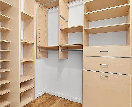 The serene bedroom is a true retreat. Bathed in natural light and whisper-quiet, it offers peaceful northern views over classic low-rise rooftops. There's room for a king-size bed, a cozy reading nook, and more. There is a windowed ensuite bathroom and an enormous walk-in closet designed with custom California Closets — a dream for any organizer.