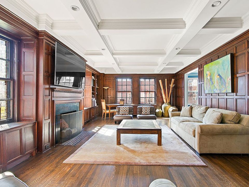 Set along a quiet, tree-shaded stretch of East 68th Street, the apartment enjoys the charm of a classic residential block while offering every modern comfort. The elevator opens directly into a welcoming entry hall that flows toward a sweeping corner living room. Detailed wood paneling, a wood-burning fireplace, and broad southern and eastern exposures bring warmth and light to the space. The adjoining dining room is perfectly proportioned for large gatherings, and the thoughtfully renovated kitchen includes professional-grade Wolf appliances, double ovens, two sinks, a substantial island, and abundant storage. A cozy den and windowed powder room complete the main floor.