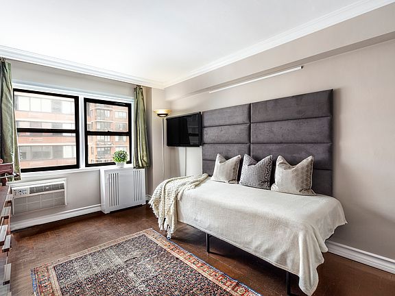 This immaculate, spacious and turnkey one-bedroom, one-bathroom home features beautiful interior design elements. Enter through the oversized entry foyer with large coat closets that flows into the large kitchen which features custom cabinetry and a dishwasher. Elegant French doors create a gracious entryway to the large living and dining room that has a separate area for a desk--perfect for working from home, and also features south-facing windows with incredible light and city views framed by luxe custom silk draperies. Located on the 10th floor of the building, it boasts high-level skyline views. This elegant home was recently renovated and features crown and baseboard moldings, walnut stained hardwood floors, designer upholstered paneled walls, custom radiator covers and ample closet space throughout. The modern updated bathroom has an elegant vanity, crystal sconces, custom Italian tiles and a large soaking tub. The king-sized bedroom has 2 large closets, more south-facing windows, Hunter Douglas Silhouette Window Treatments, silk draperies and upholstered paneled walls that add to the feeling of luxury that you experience with every turn in this gracious jewel-box of a home! The Eastbrook is a full-service, meticulously maintained co-op building located in the heart of the Upper East Side that boasts recently renovated elevators and hallways and a new awning. The building has a 24-hour doorman, resident manager, laundry in the basement, a furnished roof-deck and onsite garage. This pet friendly building permits co-purchasing, pied-a-terres along with subletting after two years of ownership. The building's extraordinary financial stability allows for low maintenance fees, has had minimal maintenance increases and no assessments in the past six years. Fun trivia fact- scenes from the film "Mighty Aphrodite" were filmed at the Eastbrook! This fantastic neighborhood is close to many of the best restaurants, shops and cultural attractions on the Upper East Side and is located steps from Central Park, Carol Schurz Park, the MET Museum, and many transportation options including the Q, 4, 5 and 6 subway and crosstown busses. Please contact us to set up a showing of this exquisite home!