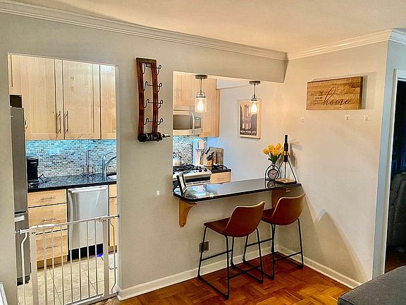 Generous sized 2 bedroom 1 bathroom apartment. Featuring nice hardwood floors and crown molding throughout the unit. This apartment is a corner unit up on a high floor which makes it very quiet. There is a generous sized living room area that features a space for a dining area. Apartment also features an open concept kitchen great for entertaining. Kitchen features hardwood cabinets, granite countertops, and all stainless-steel appliances. The open kitchen countertop is great for meal prepping or sitting down to have a meal. The large master bedroom can easily accommodate a king size bed and furniture. The master bedroom features 2 large sized closets great for storage. The 2nd bedroom features a large window which lets in plenty of natural light. The 2nd bedroom would make for a great home office or a nursery. In Addition to the master bedroom closets and linen closet the unit features a large entry closet and a double sliding door closet with space for hanging coats and features a shelving unit great for a pantry. This unit is move in ready! Building features include a 24hr doorman, live in super, elevator, building link delivery notification system, laundry room, and a beautiful roof deck with panoramic city views. The roof deck has newly appointed furniture, recently added greenery, and a community garden. The hallways were recently renovated. The building is located in a prime upper east side location in the mid 70's. Close to excellent restaurants, cafes, local schools and a short walk to some of the city's best parks which include Central park and Carl schurz. CO-Purchasers and pied a terre's are welcome and the building is pet friendly. Sublets are permitted after 2 years of ownership. Welcome to your new home!