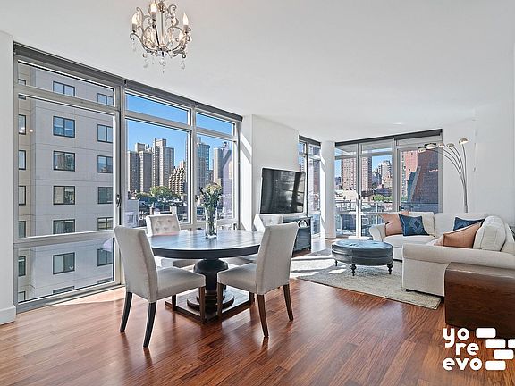 333 East 91st Street, known as The Azure, is a full-service luxury condominium with a 24-hour doorman and over 6,000 square feet of amenities, including a fitness center, children’s playroom, lounge, game room, bike room, and a roof terrace with sweeping city views.